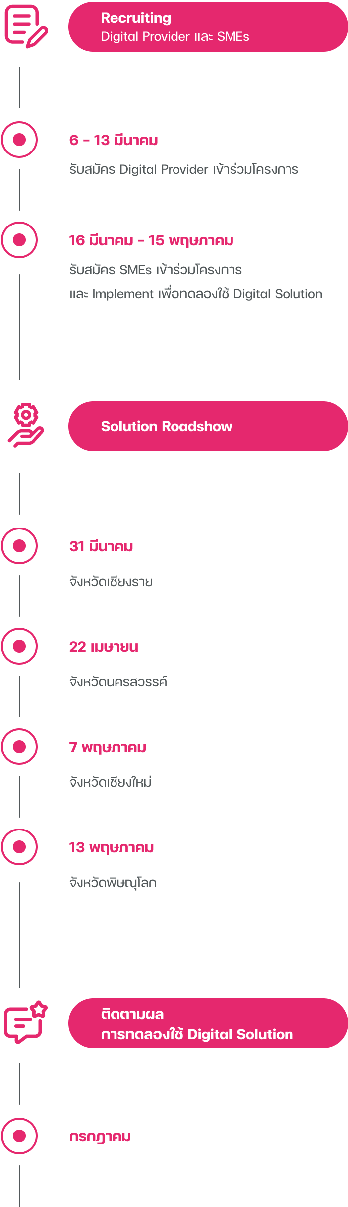 • Digital Provider เข้าร่วมกิจกรรมทั้งหมด และมีตัวแทนอย่างน้อย 1-2 คนที่สามารถเข้าร่วมกิจกรรมของโครงการได้